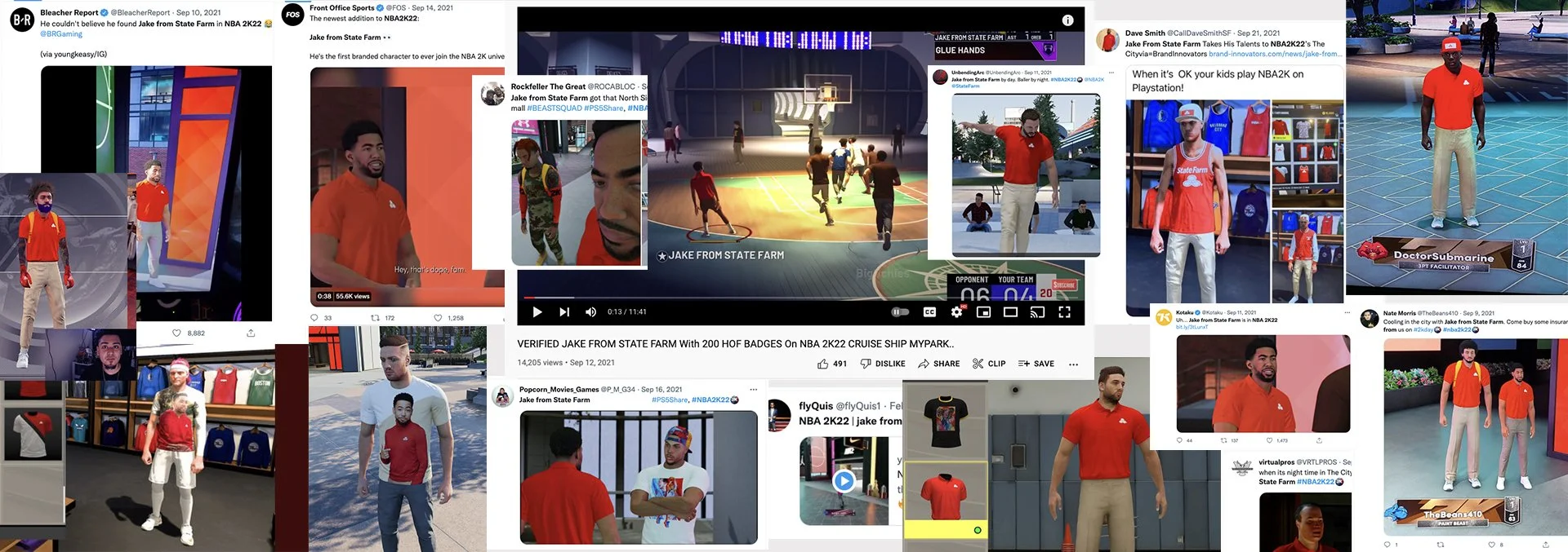 Jake from State Farm has become known as the “Good Neighbor” across America. So when NBA2K22 launched with the biggest in-game community in the world, we leveraged State Farm’s brand character in a never-been-done-before way that connect with gamers everywhere — we immortalized Jake in the game’s neighborhood courts and let others spread good neighbor vibes.